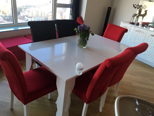 Sadece cam masa satılıktır. Bir arkadaşına tavsiye et. 170 70 ölçüsünde geniş ve son derece rahat bir çalışma masası. İmâlâttan i̇lk elden 2.