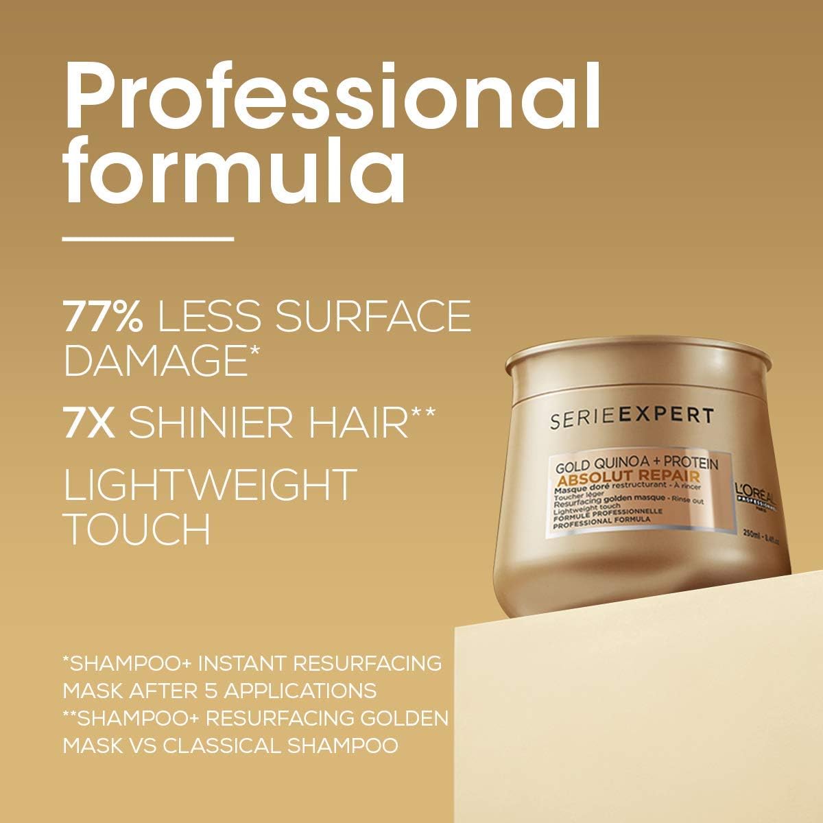Sort by l oréal professionnel serie expert absolut repair gift set for damaged hair. Why you need it l oreal professionnel absolut repair gold mask is infused with gold quinoa protein which leaves hair looking instantly nourished softer and shinier as if renewed. Infused with gold quinoa protein absolut repair now reduces hair surface damages by 77 and brings 7x shinier hair while leaving it with a lightweight touch. L oréal professionnel serie expert absolut repair golden masque is infused with gold quinoa bran extract and wheat protein to combine intense resurfacing of the hair fibre with a lightweight touch.