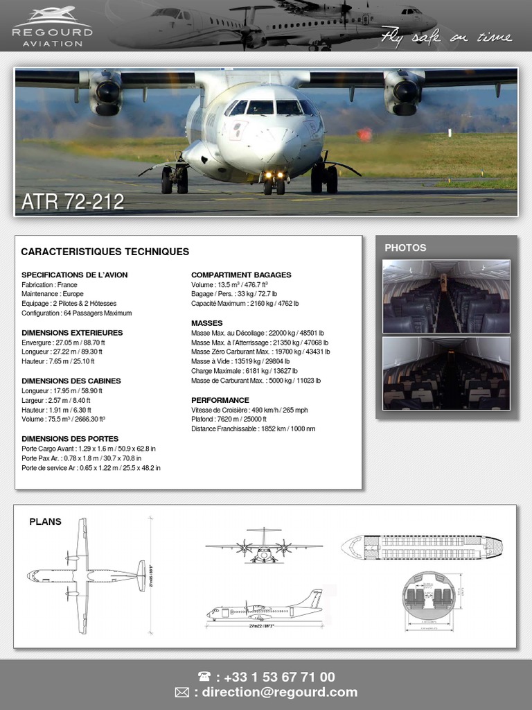Avion atr 72 masse maximale. 2 turbopropulseurs pratt whitney canada pw127 poussée atr 72 200. L atr 72 version allongée de l atr 42 permettant d accueillir jusqu à 78 passagers a été mis en service en 1989 il est disponible en version tout cargo 75 m 3 8 400 kg. Juli 2009 in toulouse blagnac seinen erstflug wurde am 1. 5 000 kg 11 023 11 kg performance vitesse de croisière.